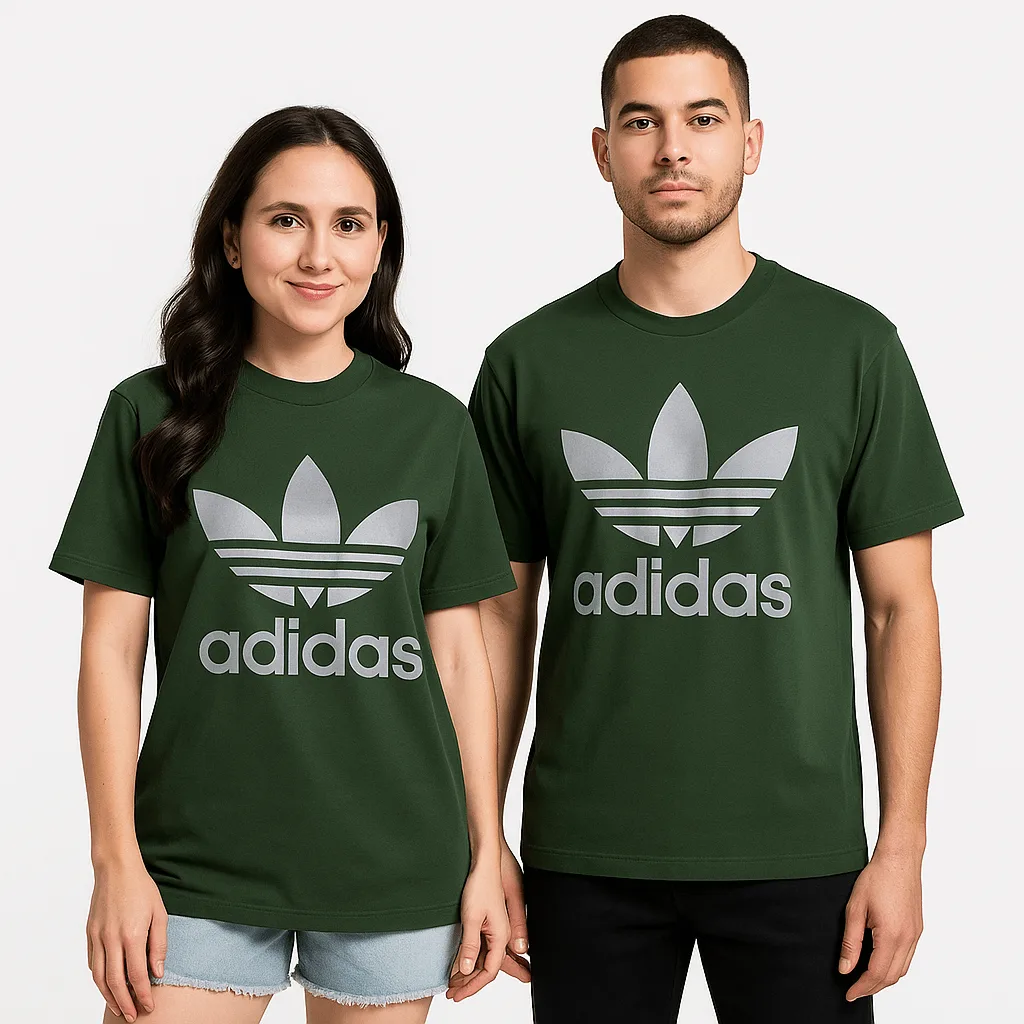 Each tee is made from soft 100% cotton jersey, with a glossy Trefoil print on the front. Unisex relaxed fit, ribbed crew neck, short sleeves—perfect for everyday streetwear.